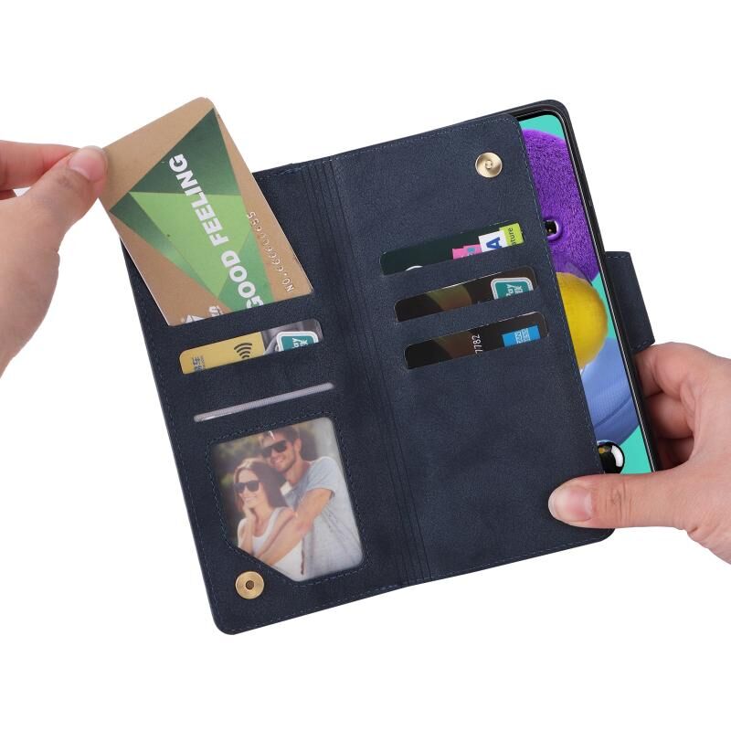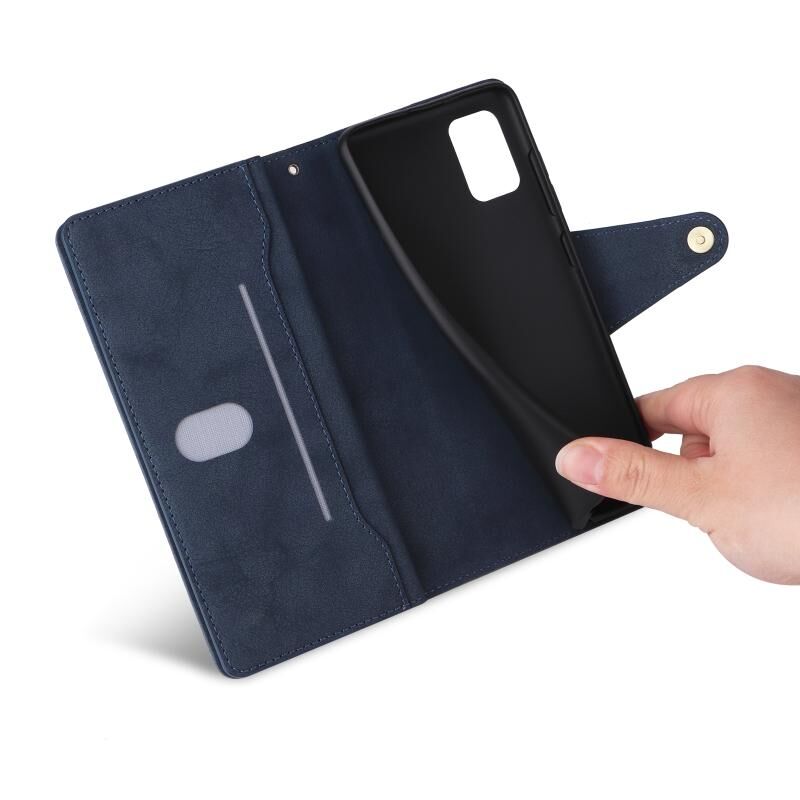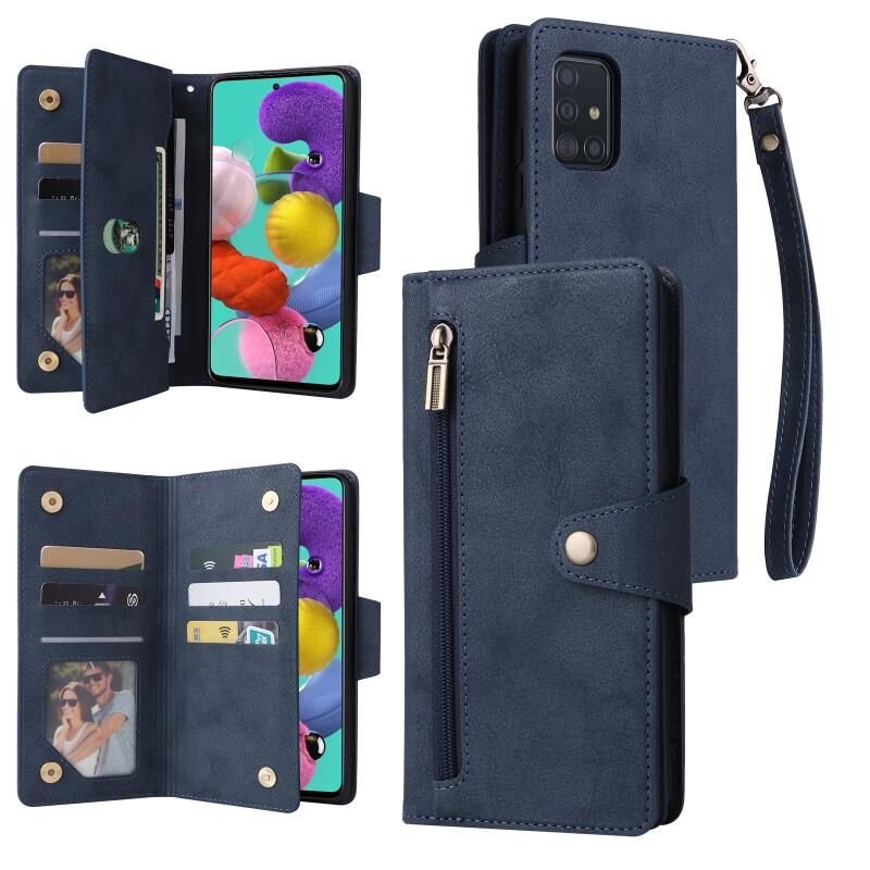 Για Samsung Galaxy A51 Rivet πόρπη 9 κάρτες τρεις φορές δερμάτινη θήκη τηλεφώνου (μπλε)
