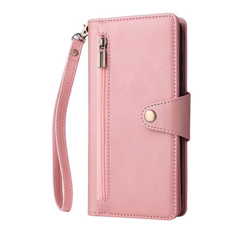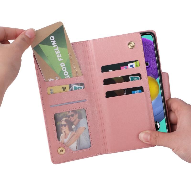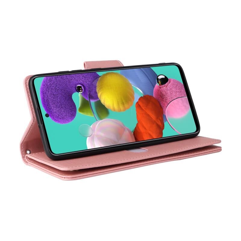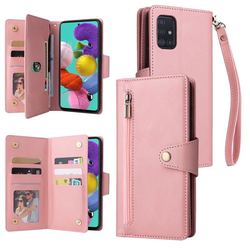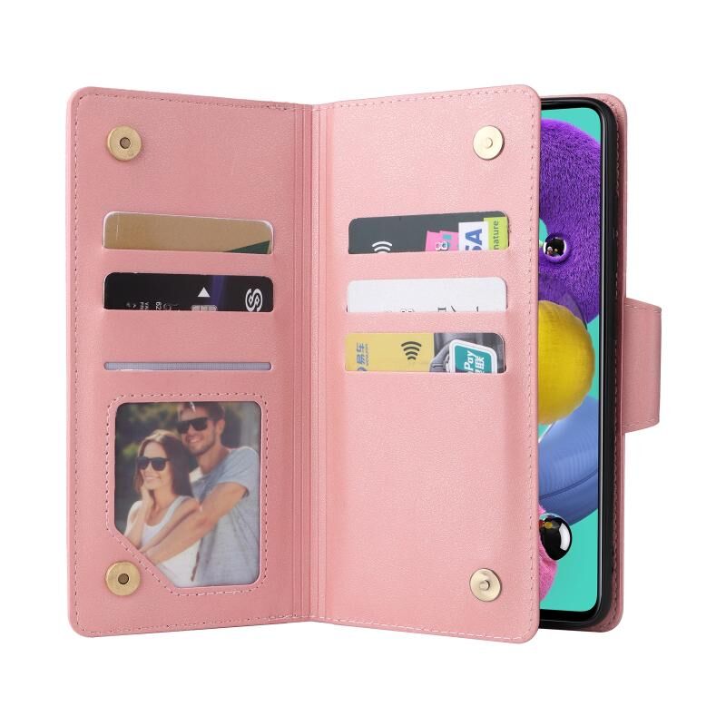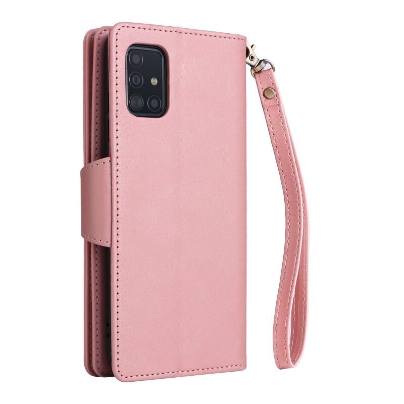 Για Samsung Galaxy A51 Rivet πόρπη 9 κάρτες τρεις φορές δερμάτινη θήκη τηλεφώνου (ροζ χρυσό)