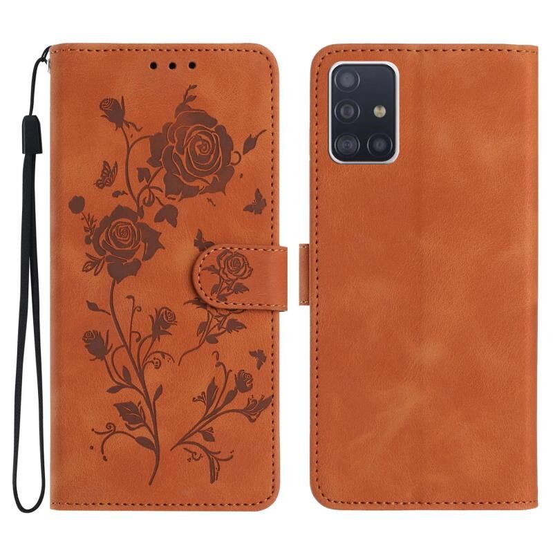 Θήκη τηλεφώνου Samsung Galaxy A51 από δέρμα με ανάγλυφο σχέδιο τριαντάφυλλου (Χρυσό ροζ)