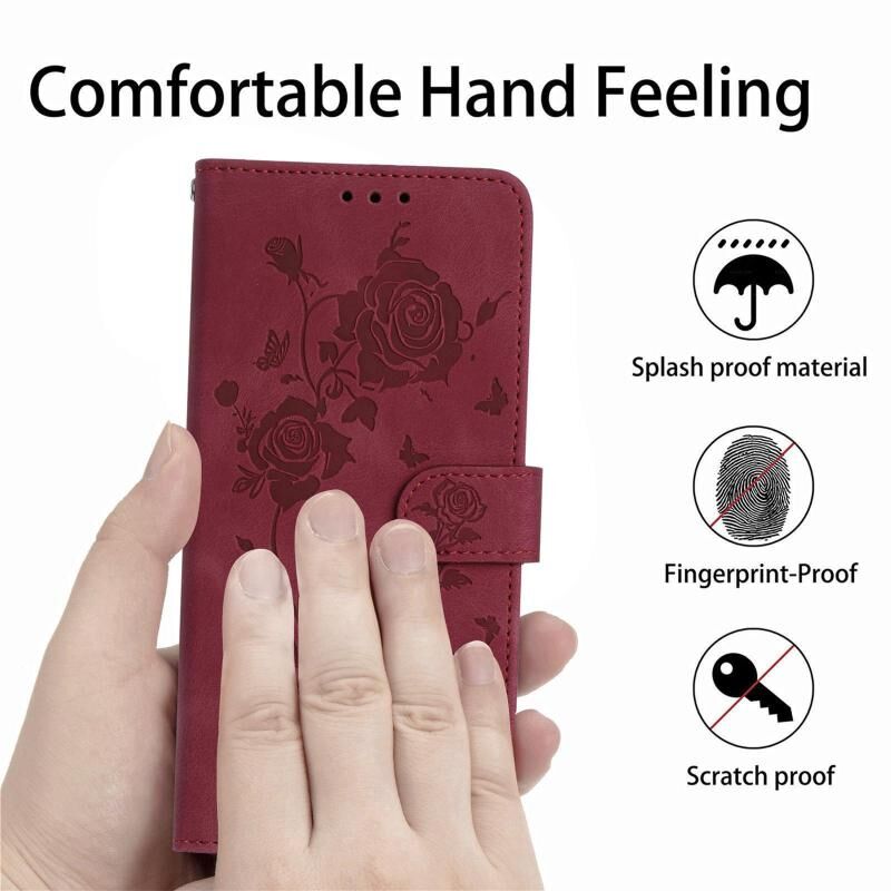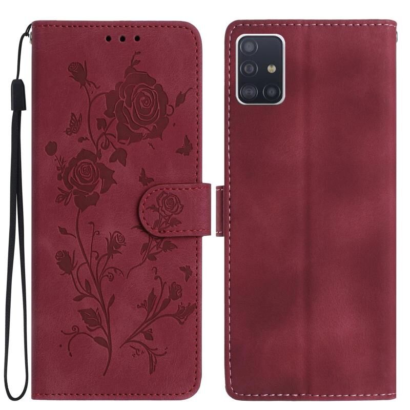 Θήκη τηλεφώνου Samsung Galaxy A51 από δέρμα με ανάγλυφο σχέδιο τριαντάφυλλου (Κόκκινο)