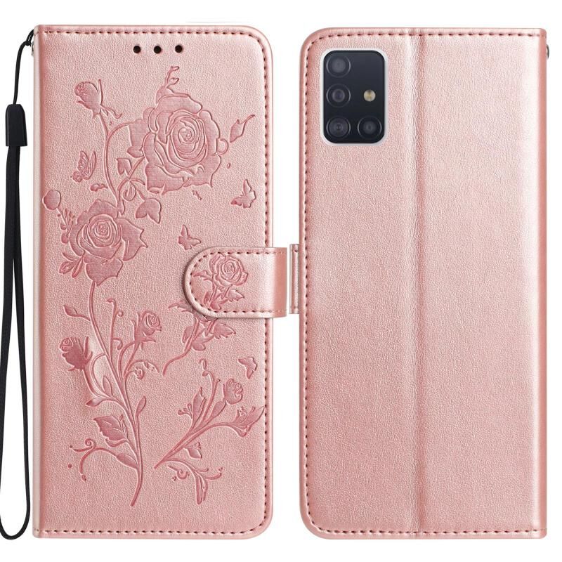 Θήκη τηλεφώνου Samsung Galaxy A51 από δέρμα με ανάγλυφο σχέδιο τριαντάφυλλου (Χρυσό ροζ)