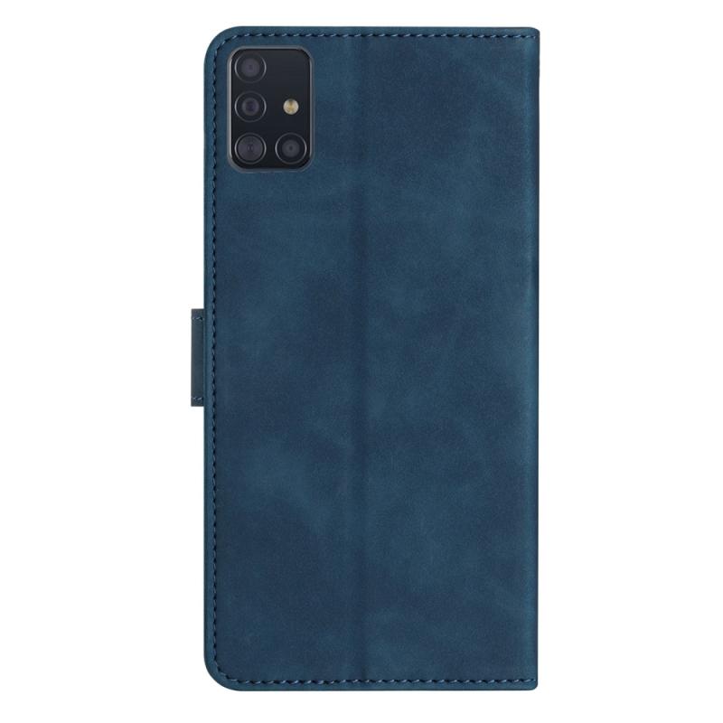 Θήκη τηλεφώνου Samsung Galaxy A51 Seven Butterflies, δερμάτινη με ανάγλυφο σχέδιο (Μπλε)