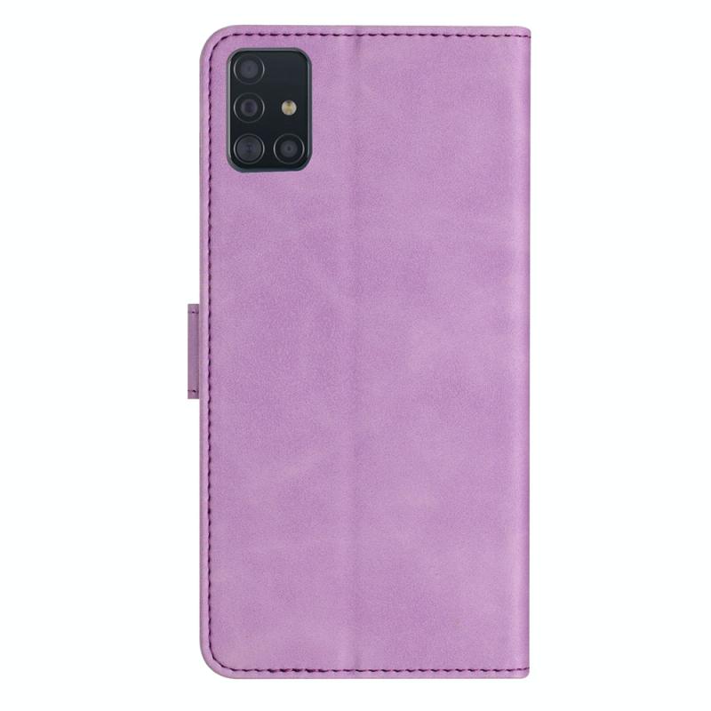 Θήκη τηλεφώνου Samsung Galaxy A51 Seven Butterflies, δερμάτινη με ανάγλυφο σχέδιο (Μωβ)