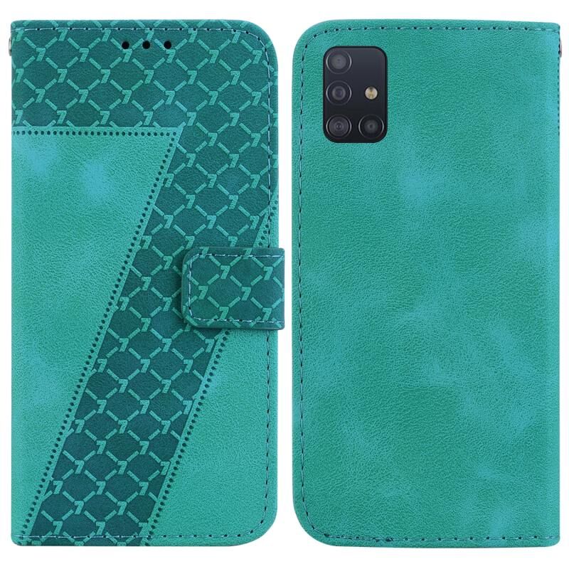 Θήκη τηλεφώνου από ανάγλυφο δέρμα σε σχήμα επτά για Samsung Galaxy A51 (Πράσινο)