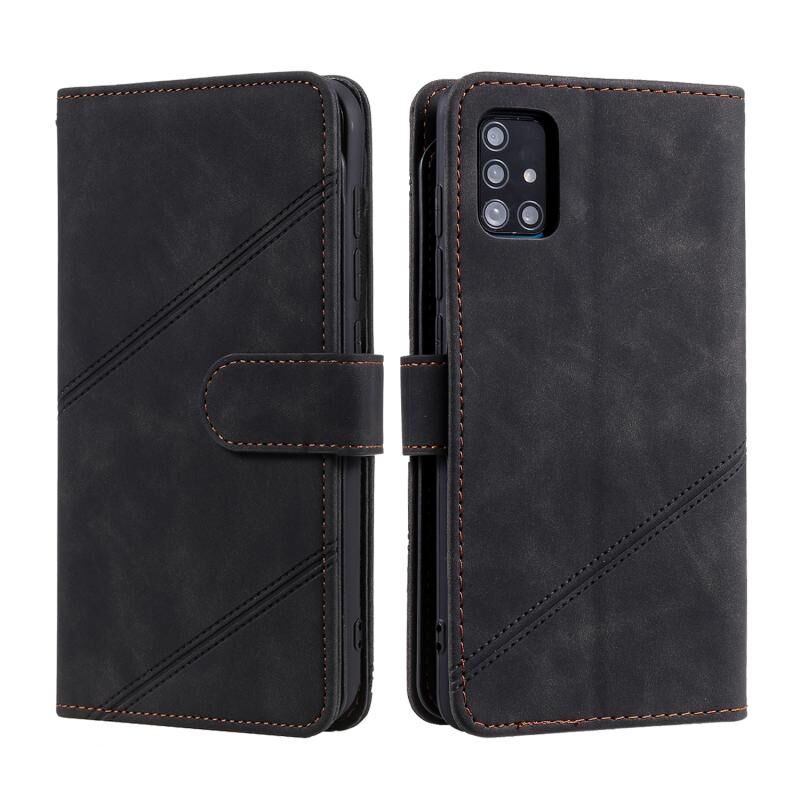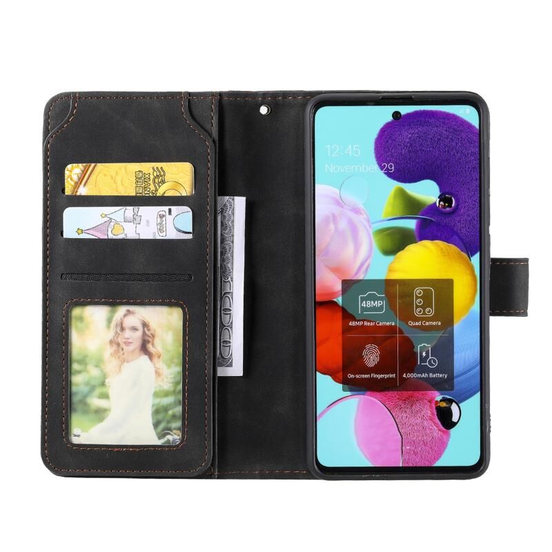 Για Samsung Galaxy A51 Skin Feel Business Οριζόντια Flip PU δέρμα υπόθεση με θήκη & υποδοχές πολλαπλών καρτών & πορτοφόλι & κορδόνι & κορνίζα & πλαίσιο φωτογραφιών (Μαύρο)