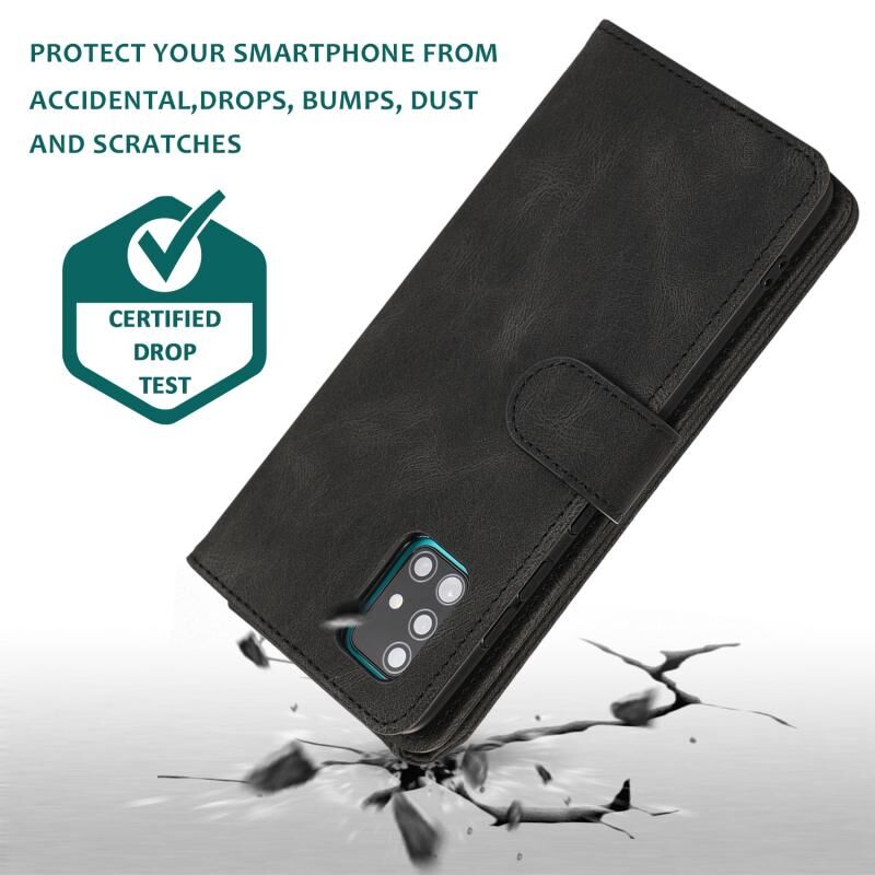 Για Samsung Galaxy A51 Skin-feel Crazy Horse υφή φερμουάρ τσάντα πορτοφόλι οριζόντια Flip δερμάτινη θήκη με κάτοχο & υποδοχές για κάρτες & πορτοφόλι & κορδόνι (Μαύρο)