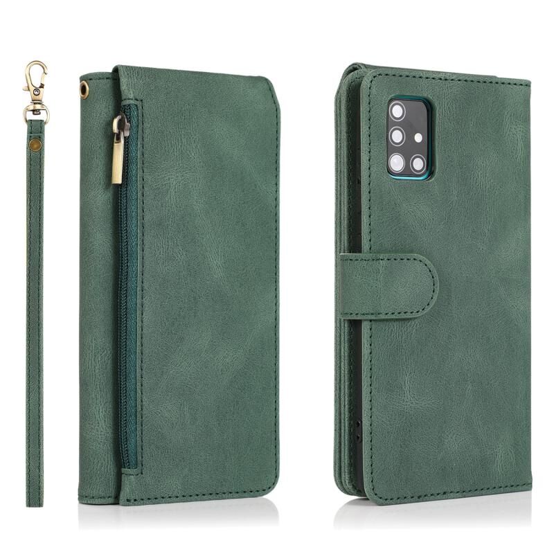 Για Samsung Galaxy A51 Skin-feel Crazy Horse υφή φερμουάρ τσάντα πορτοφόλι οριζόντια Flip δερμάτινη θήκη με κάτοχο & υποδοχές για κάρτες & πορτοφόλι & κορδόνι (Σκούρο πράσινο)