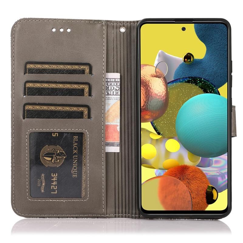 Για Samsung Galaxy A51 δέρμα αίσθηση ανάγλυφο ηλιοτρόπιο οριζόντια Flip δερμάτινη θήκη με υποδοχές για κάρτες & υποδοχές & πορτοφόλι & κορδόνι (γκρι)