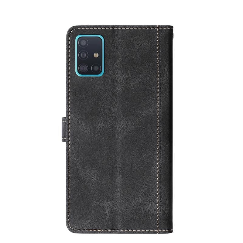 Για Samsung Galaxy A51 Stitching δέρμα αίσθηση μαγνητική πόρπη οριζόντια Flip PU δέρμα υπόθεση με κάτοχο & υποδοχές για κάρτες & πορτοφόλι (Μαύρο)