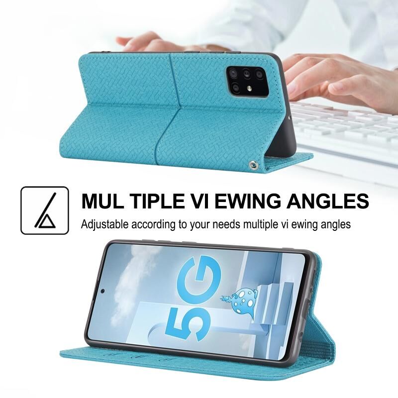 Για το Samsung Galaxy A51 Woven Texture Stitching Μαγνητική οριζόντια Flip PU δερμάτινη θήκη με θήκη & υποδοχές για κάρτες & πορτοφόλι & κορδόνι (μπλε)