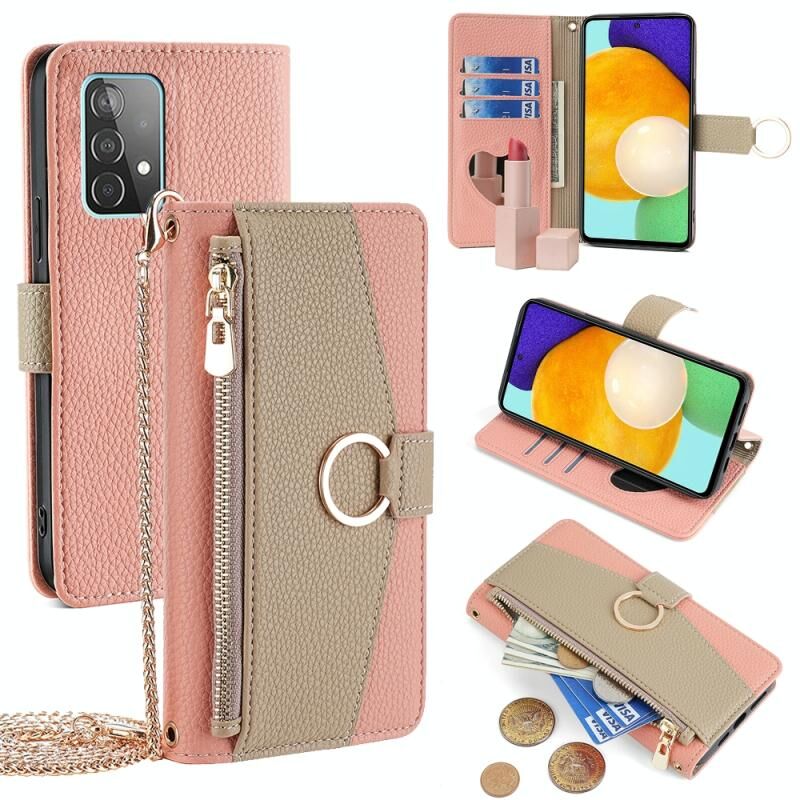 Για το Samsung Galaxy A52 4G / 5G / A52s 5G Crossbody Litchi Texture Δερμάτινη θήκη τηλεφώνου (ροζ)