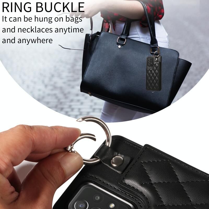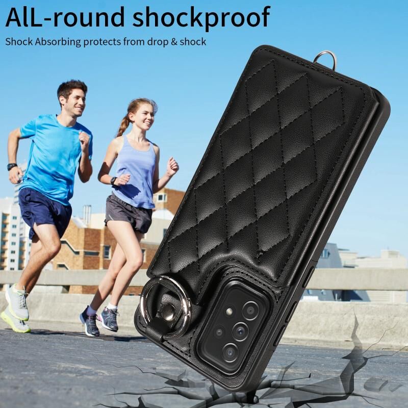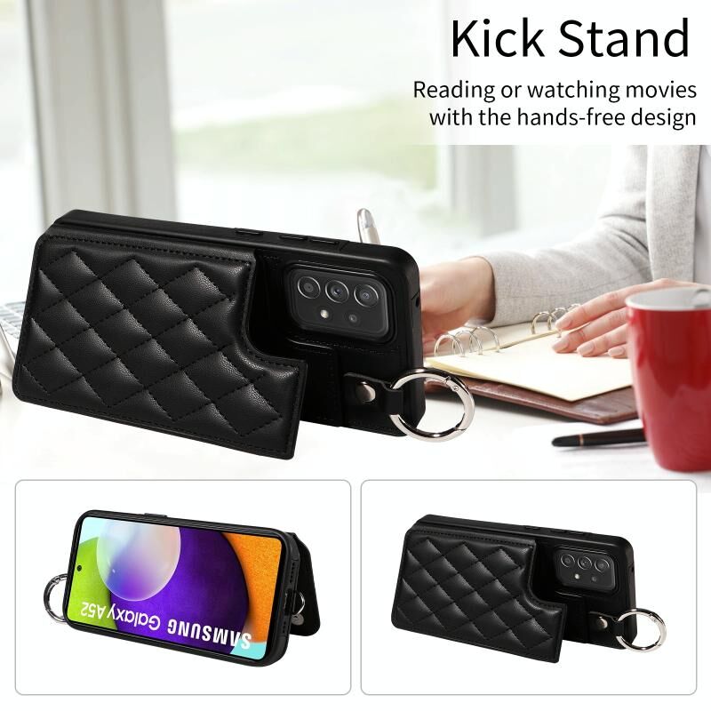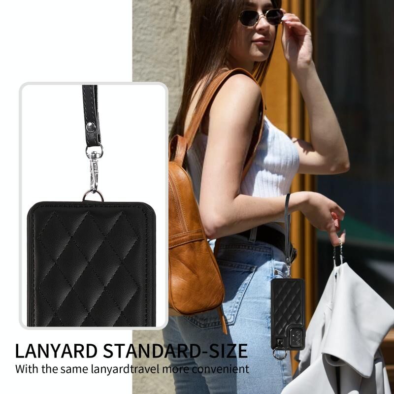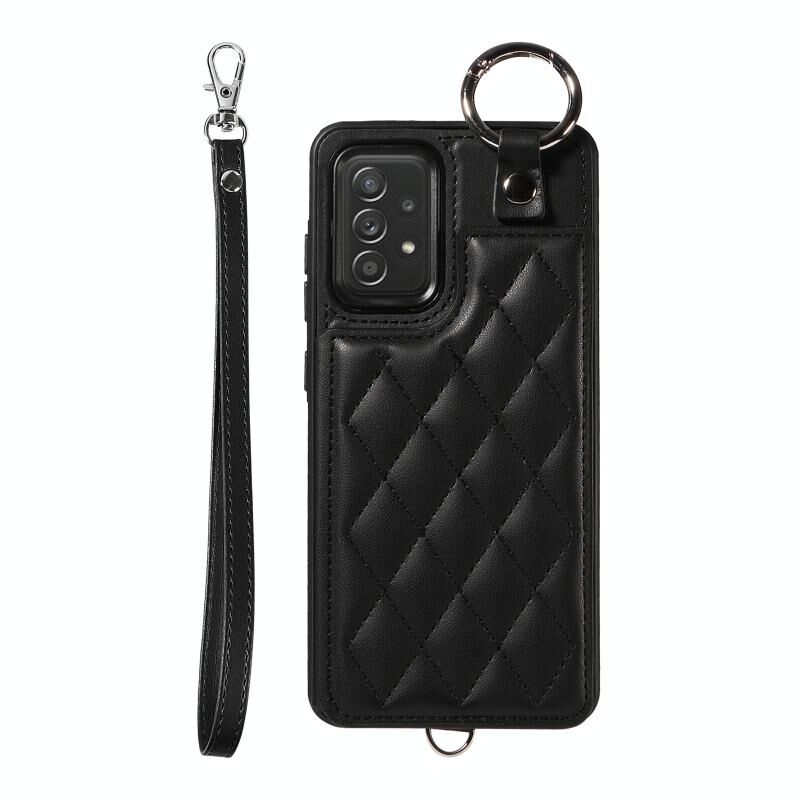Για Samsung Galaxy A52 4G / 5G / A52s Rhombic Υφή κάρτα τσάντα υπόθεση τηλεφώνου με σύντομο κορδόνι (μαύρο)