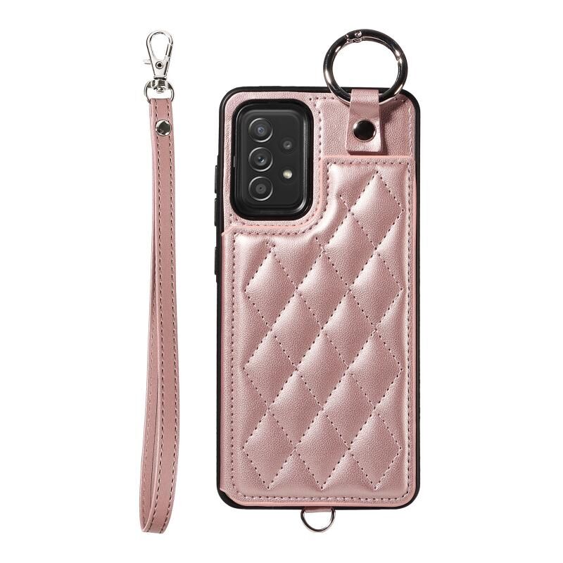 Για Samsung Galaxy A52 4G / 5G / A52s Rhombic Υφή κάρτα τσάντα υπόθεση τηλεφώνου με σύντομο κορδόνι (ροζ χρυσό)