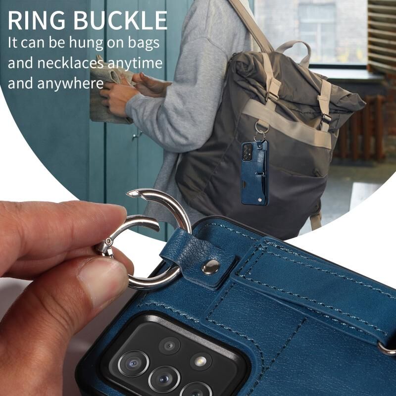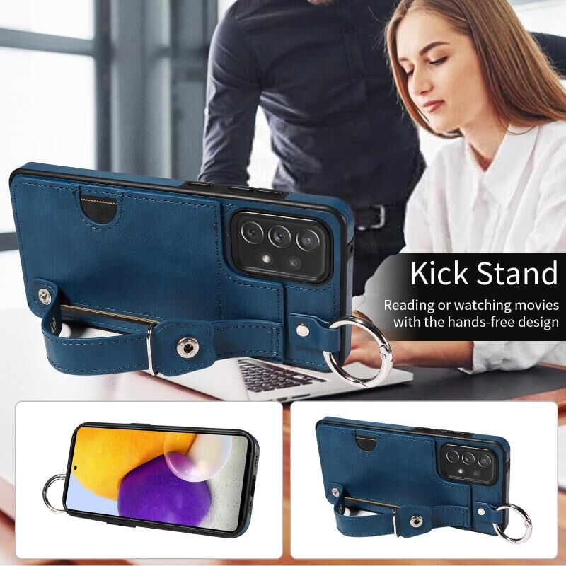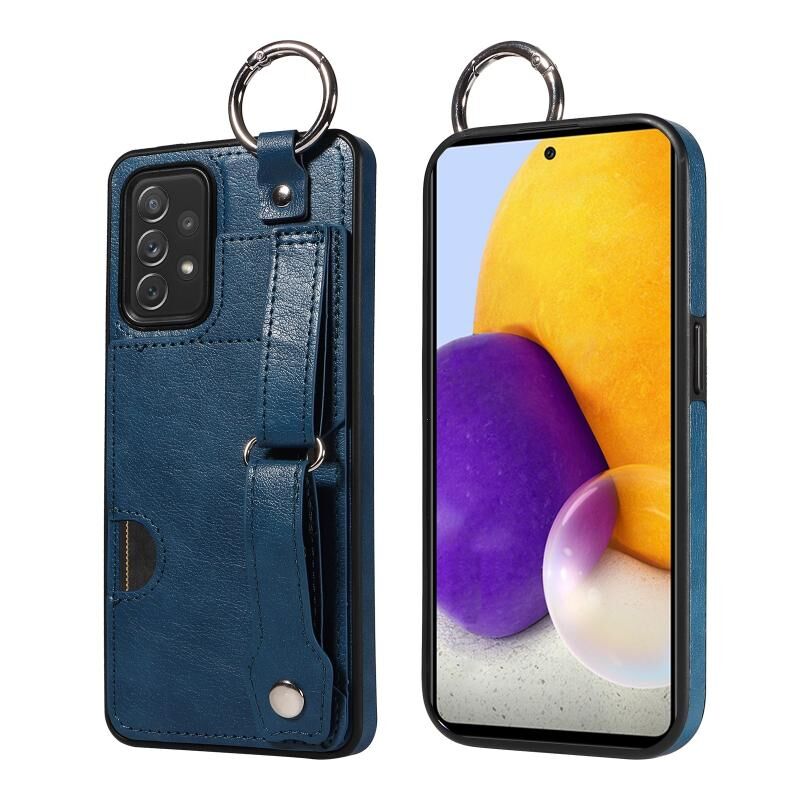 Για Samsung Galaxy A52 4G/5G Calf υφή καρπού κάρτα Slot Ring υπόθεση τηλεφώνου (μπλε)