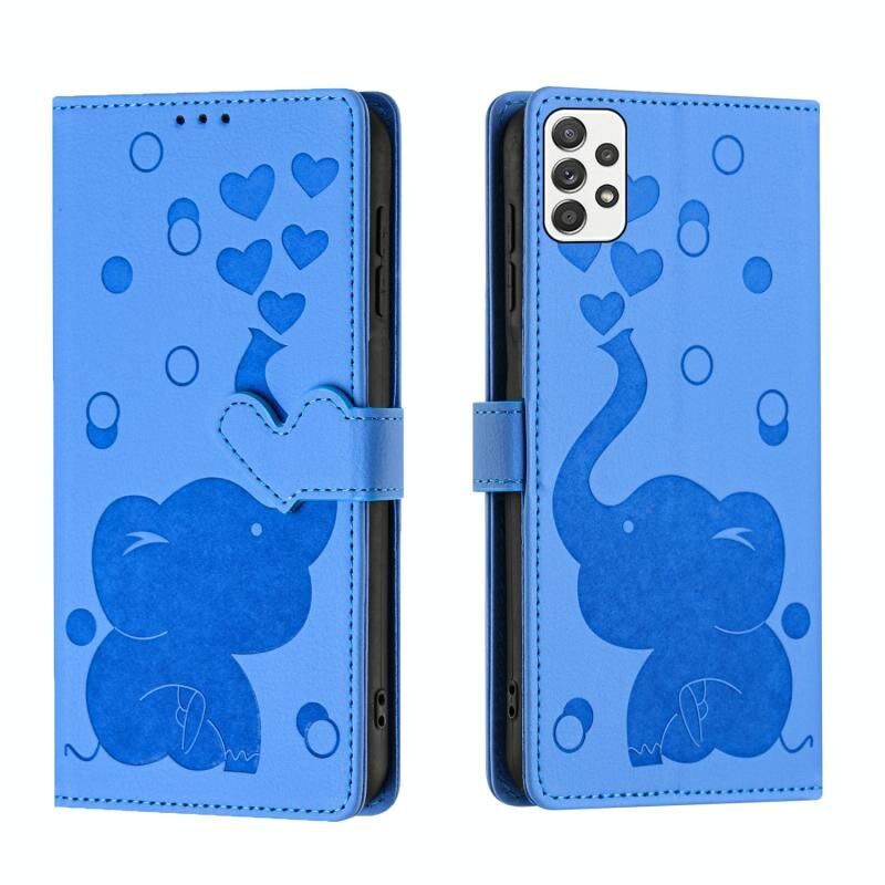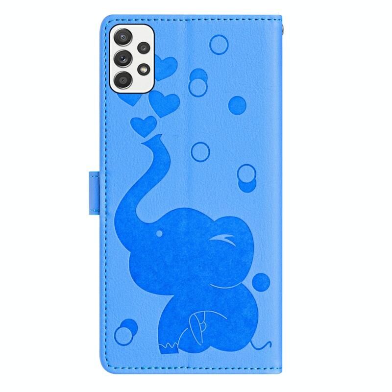 Θήκη τηλεφώνου από δέρμα με ανάγλυφο σχέδιο καρτούν ελέφαντα για Samsung Galaxy A52 4G / 5G (Μπλε)
