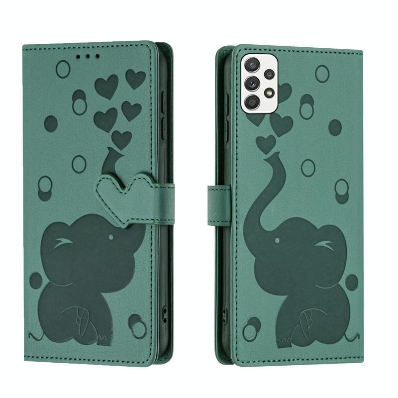 Θήκη τηλεφώνου από δέρμα με ανάγλυφο σχέδιο καρτούν ελέφαντα για Samsung Galaxy A52 4G / 5G (Μπλε)
