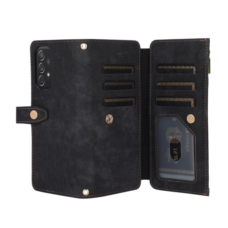 Για το Samsung Galaxy A52 4G / 5G Dream 9-Card πορτοφόλι φερμουάρ τσάντα δερμάτινη θήκη τηλεφώνου (μαύρο)