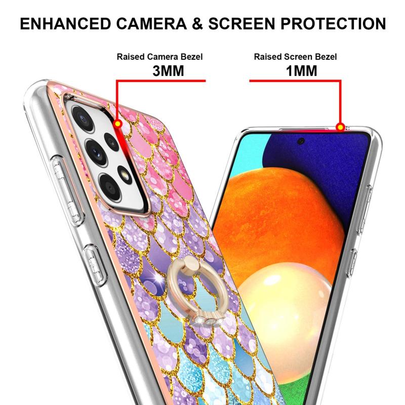 For Samsung Galaxy A52 4G/5G Electroplating Pattern IMD TPU Shockproof Case with Rhinestone Ring Holder(Colorful Scales)