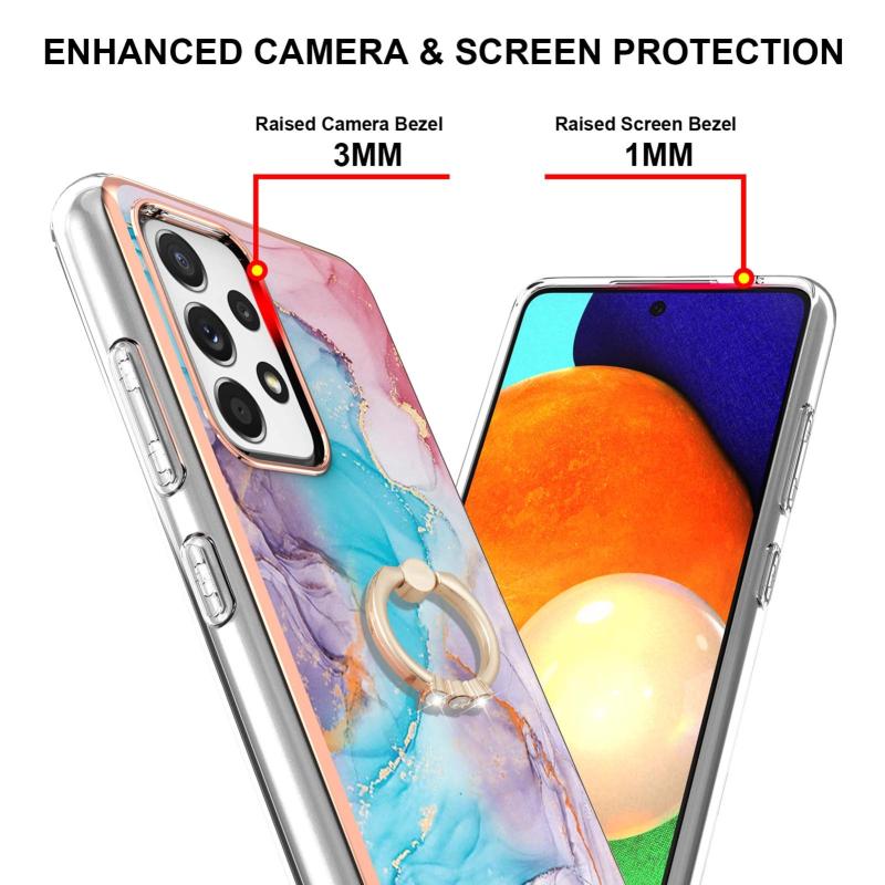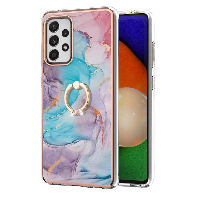 Θήκη για Samsung Galaxy A52 4G/5G με Επικάλυψη Ηλεκτρολυτικής Επιμετάλλωσης, μοτίβο IMD, αντικραδασμική από TPU με Δαχτυλίδι Στήριξης και Κρύσταλλα (Γαλαξιακό Μπλε Μάρμαρο)