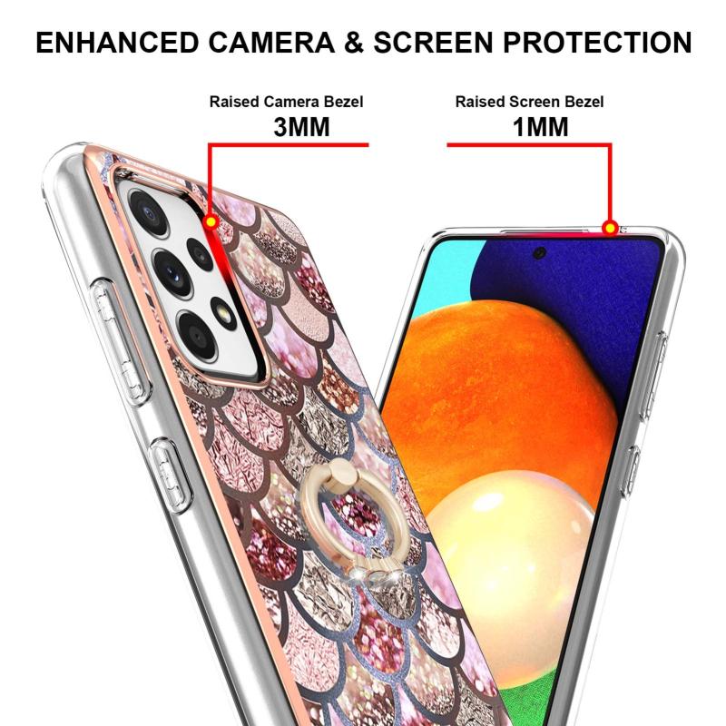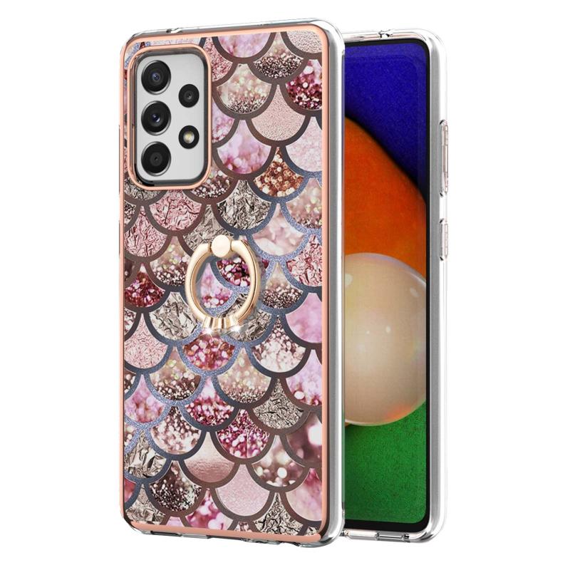 Θήκη για Samsung Galaxy A52 4G/5G με Επικάλυψη Ηλεκτρολυτικής Επιμετάλλωσης, μοτίβο IMD, αντικραδασμική από TPU με Δαχτυλίδι Στήριξης και Κρύσταλλα (Γαλαξιακό Μπλε Μάρμαρο)