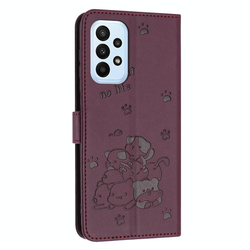Θήκη δερμάτινη για Samsung Galaxy A52 4G / 5G με ανάγλυφο σχέδιο γατάκι και λουρί (Μωβ)