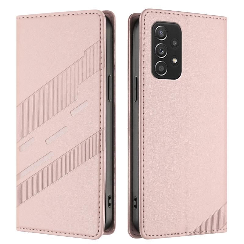 Θήκη τηλεφώνου Samsung Galaxy A52 4G / 5G ανάγλυφη, πολυλειτουργική, δερμάτινη, ρετρό (ρόζ)