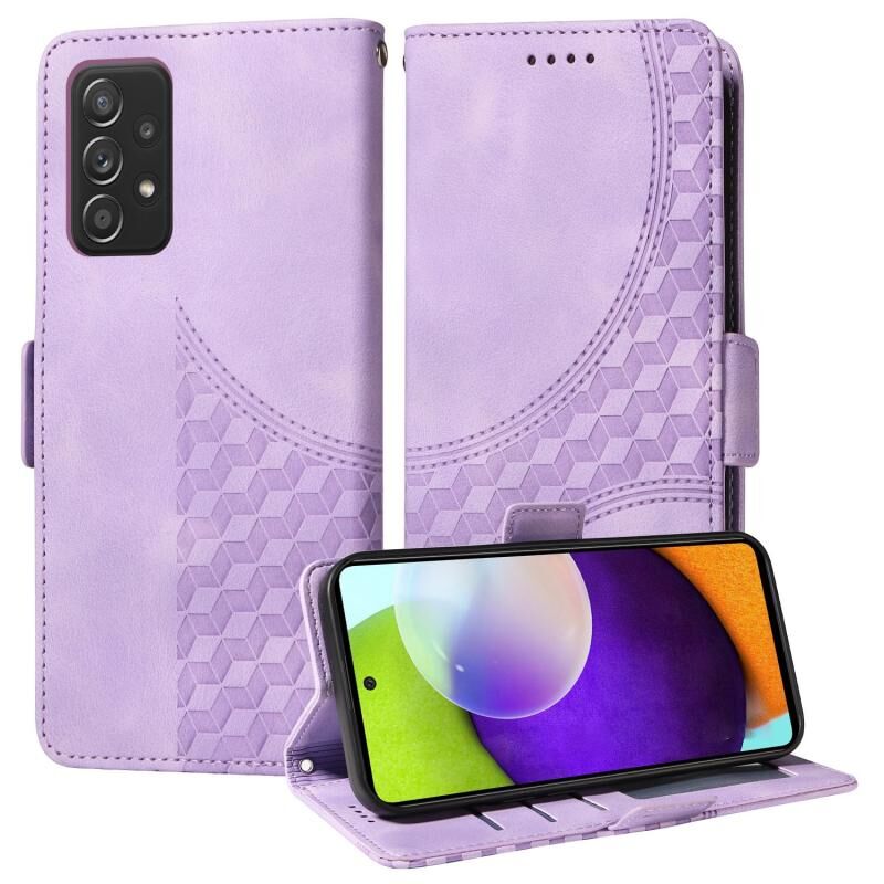 Για Samsung Galaxy A52 4G / 5G ανάγλυφο ρόμβος αστερόεσσα δερμάτινη θήκη τηλεφώνου (μωβ)