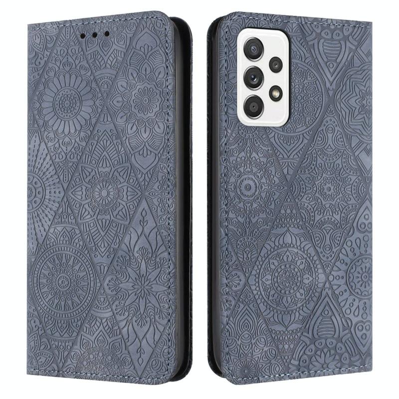 Θήκη τηλεφώνου Samsung Galaxy A52 4G/5G από δέρμα με έθνικ ανάγλυφο και απορρόφηση (Γκρι)