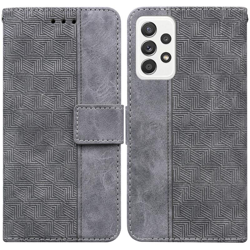 Για Samsung Galaxy A52 4G / 5G Γεωμετρική ανάγλυφη δερμάτινη θήκη τηλεφώνου (γκρι)