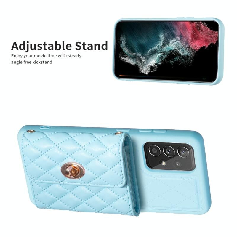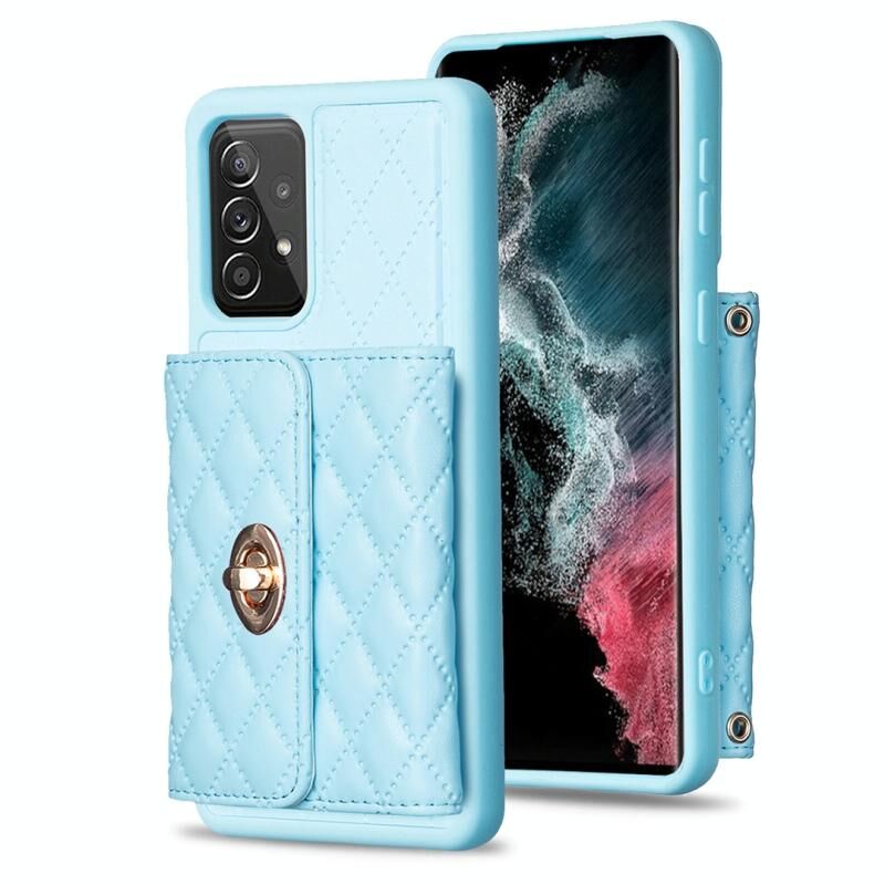 Για το Samsung Galaxy A52 4G / 5G Οριζόντια μεταλλική πόρπη πορτοφόλι ρομβοειδή δερμάτινη θήκη τηλεφώνου (μπλε)