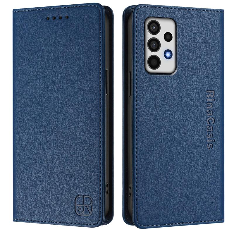 For Samsung Galaxy A52 4G / 5G RC01 Dual-Folded Magnetic Suction RFID Leather Phone Case(Dark Blue)