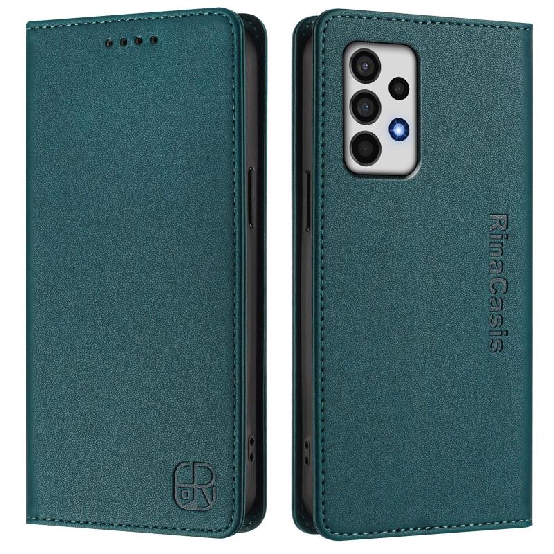 For Samsung Galaxy A52 4G / 5G RC01 Dual-Folded Magnetic Suction RFID Leather Phone Case(Dark Green)