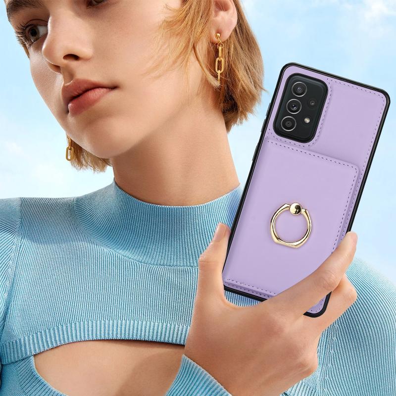For Samsung Galaxy A52 4G/5G RFID Anti-theft Card Ring Holder Phone Case(Purple)