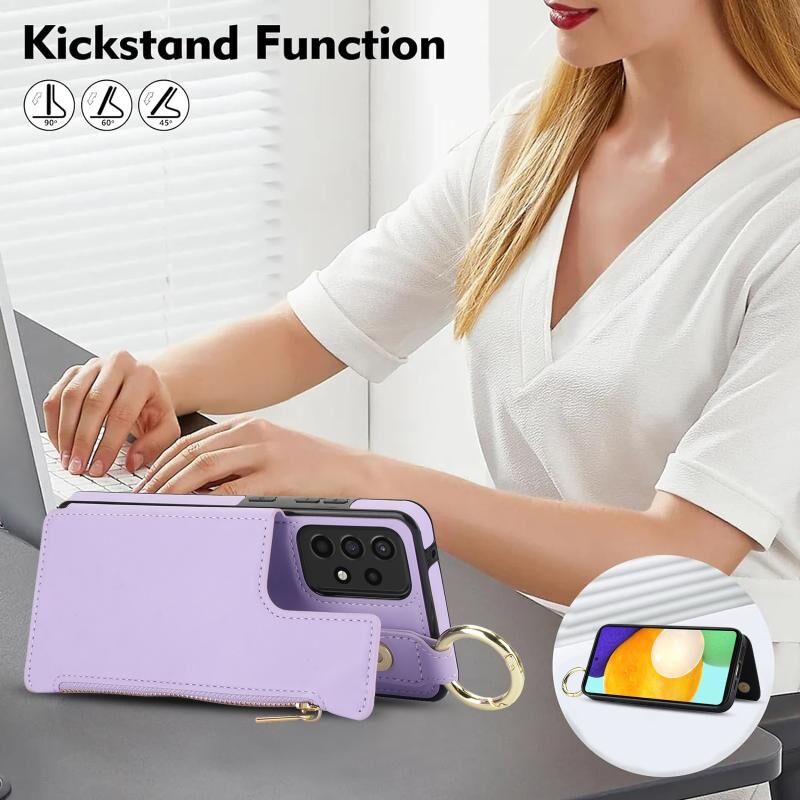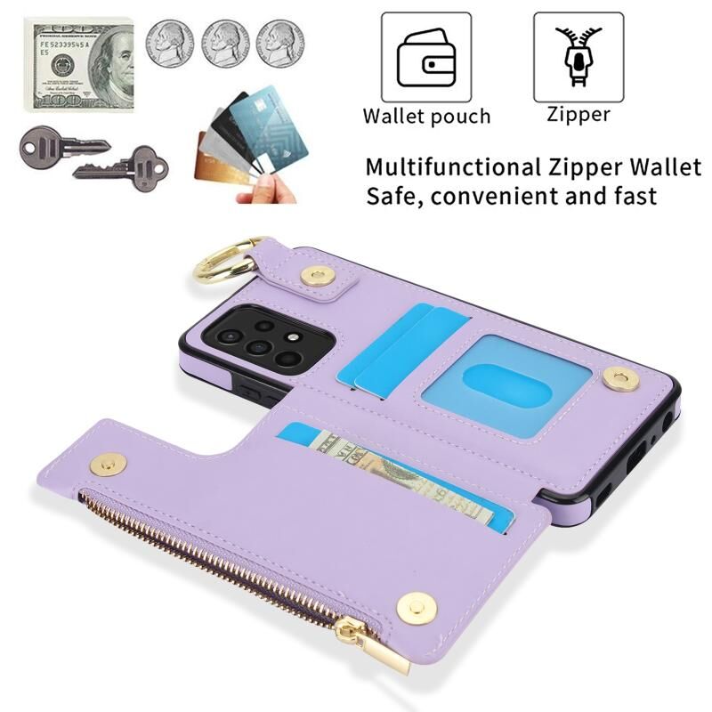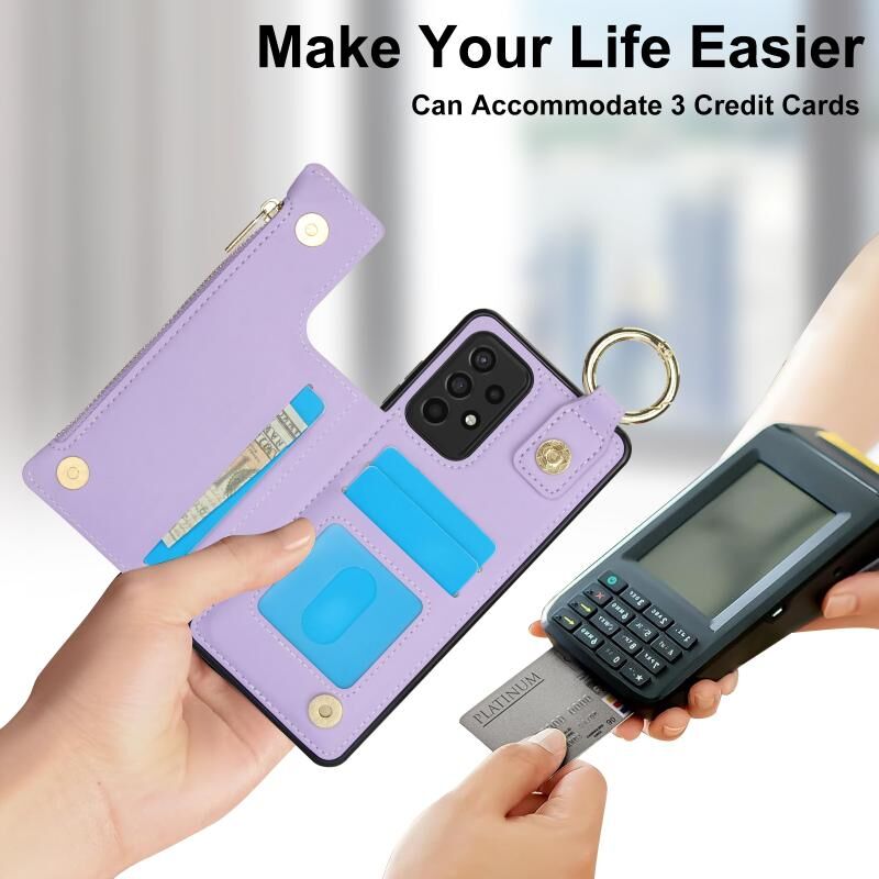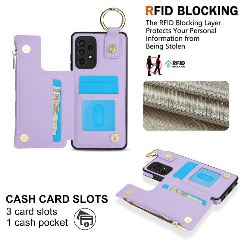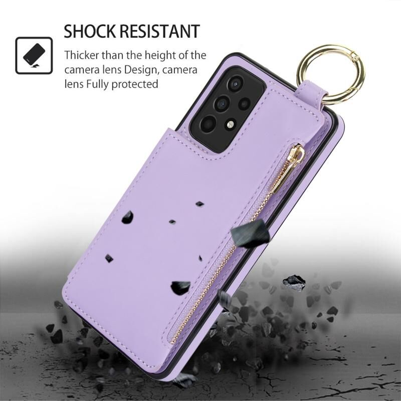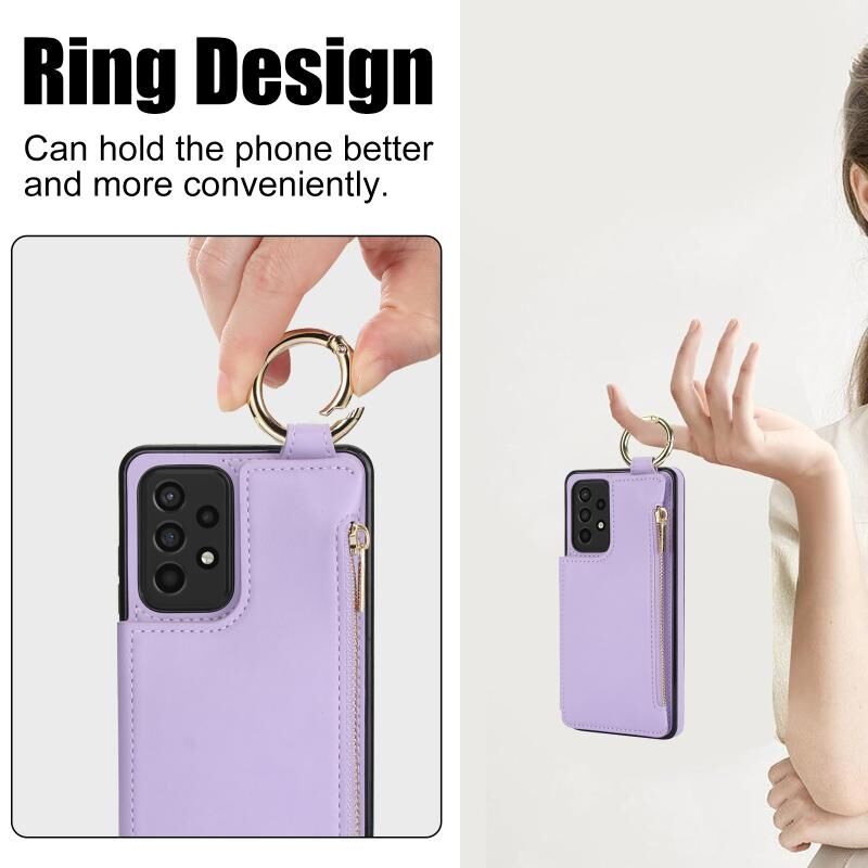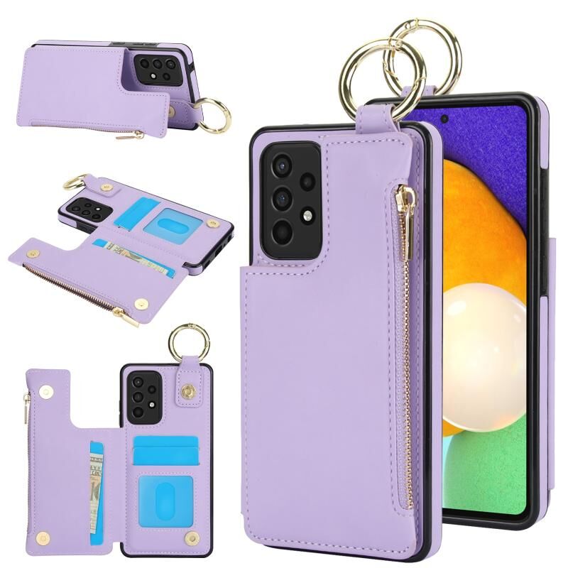 Για Samsung Galaxy A52 4G / 5G RFlD Anti-theft Διπλό πόρπη δαχτυλίδι φερμουάρ τηλέφωνο υπόθεση κάρτα (Μωβ)
