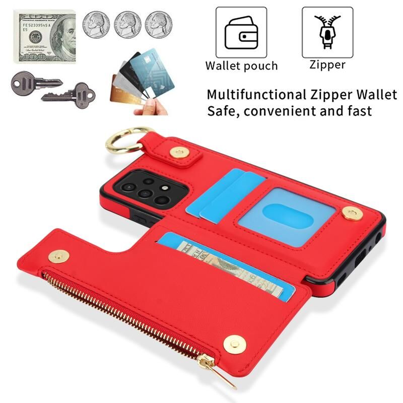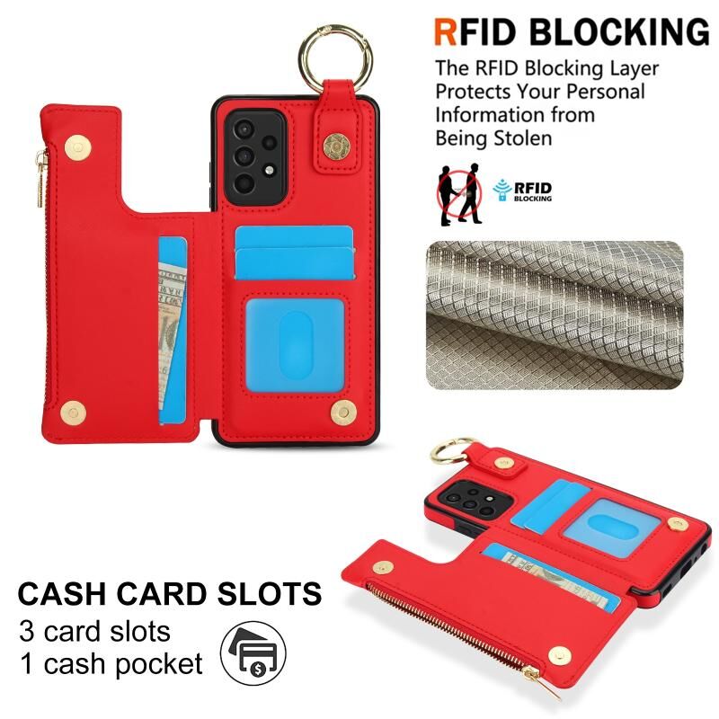 Για Samsung Galaxy A52 4G / 5G RFlD Anti-theft Διπλό πόρπη δαχτυλίδι φερμουάρ τηλέφωνο υπόθεση κάρτα (Κόκκινο)