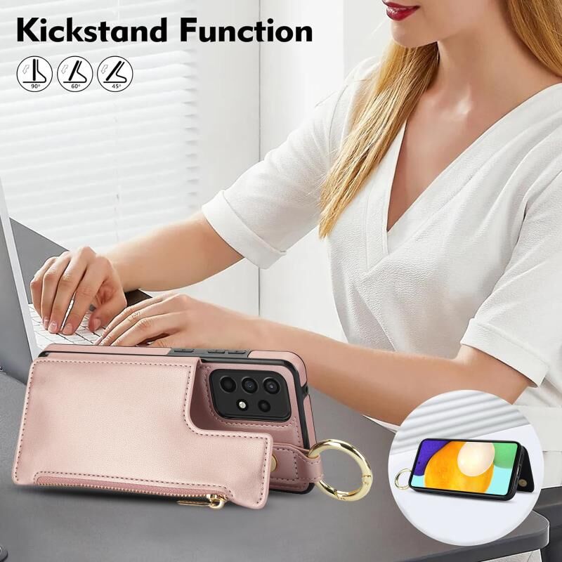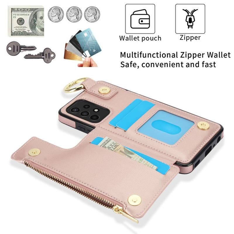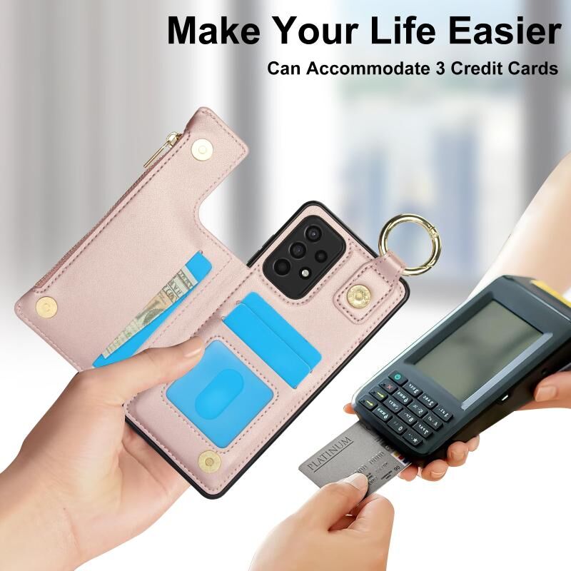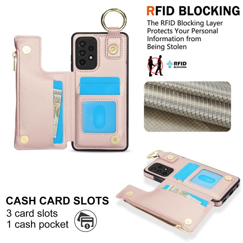 Για Samsung Galaxy A52 4G / 5G RFlD Anti-theft Διπλό πόρπη δαχτυλίδι φερμουάρ τηλέφωνο υπόθεση κάρτα (Ροζ χρυσός)