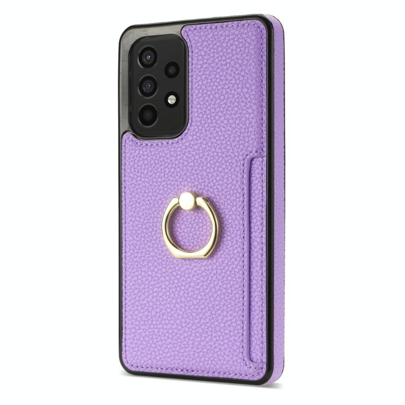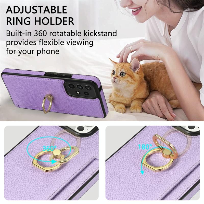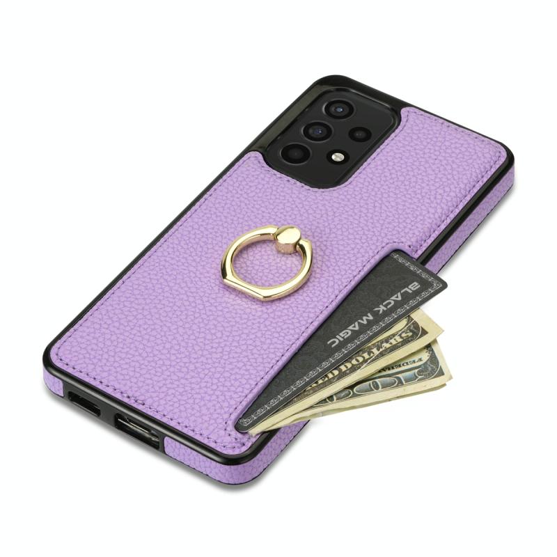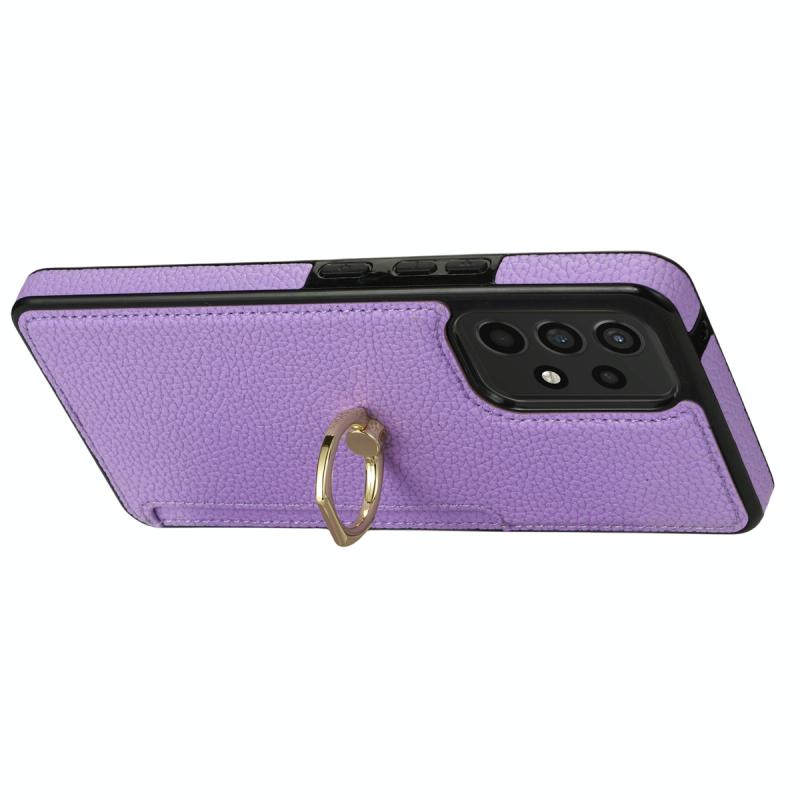 For Samsung Galaxy A52 4G/5G Ring Card Litchi Leather Back Phone Case(Purple)