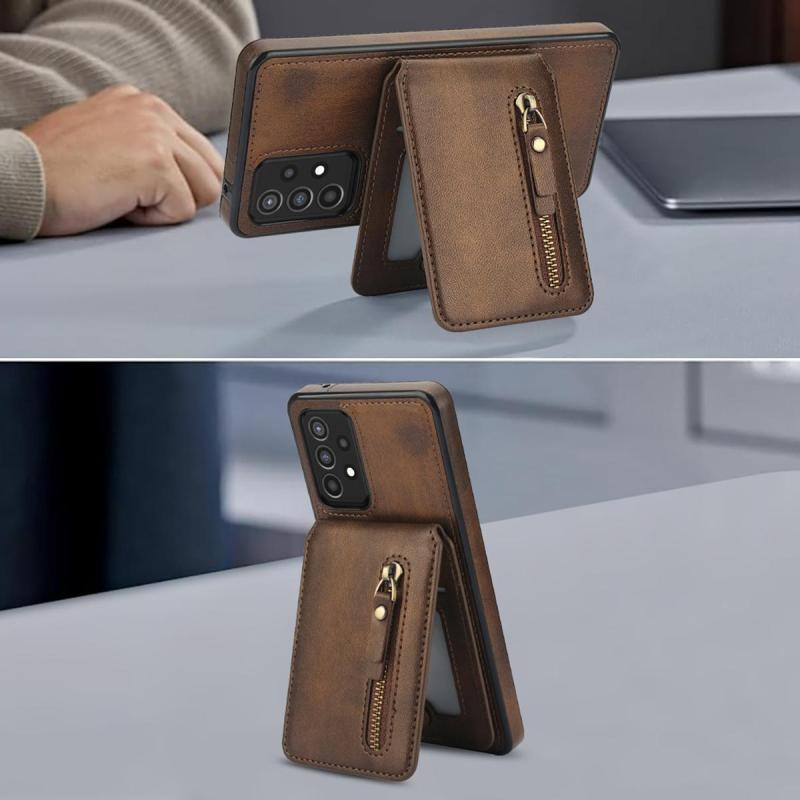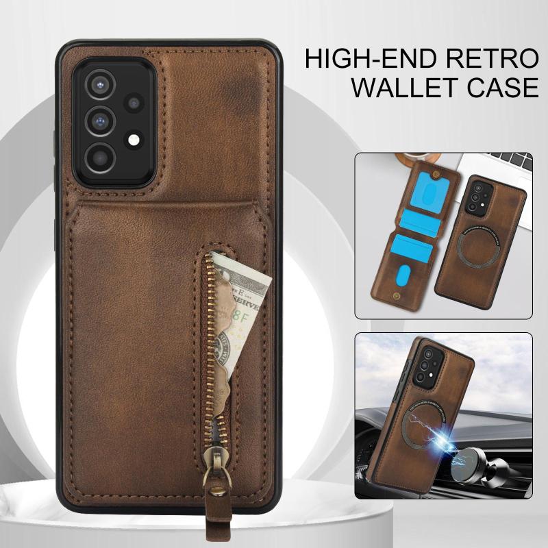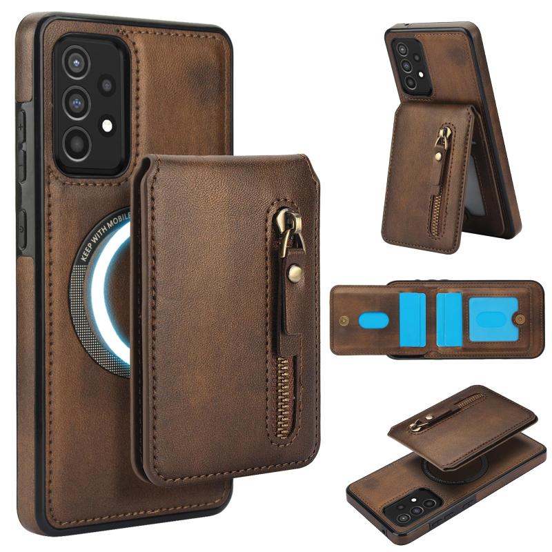 For Samsung Galaxy A52 4G / 5G Zipper Wallet Split MagSafe Leather Back Phone Case(Brown)