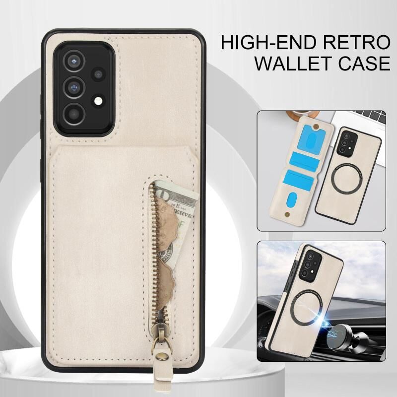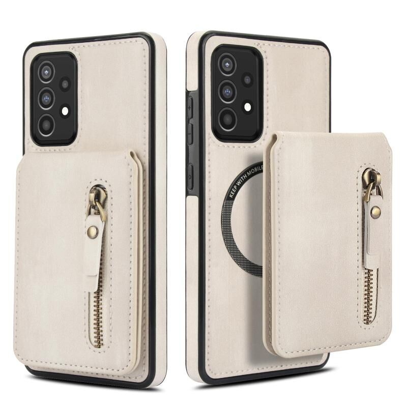 For Samsung Galaxy A52 4G / 5G Zipper Wallet Split MagSafe Leather Back Phone Case(White)