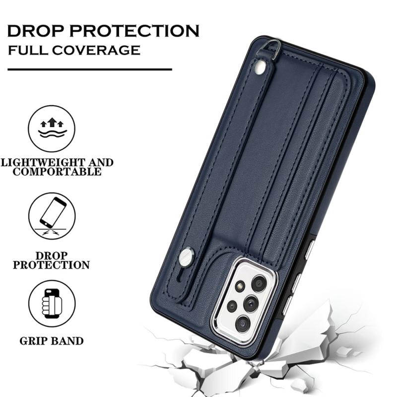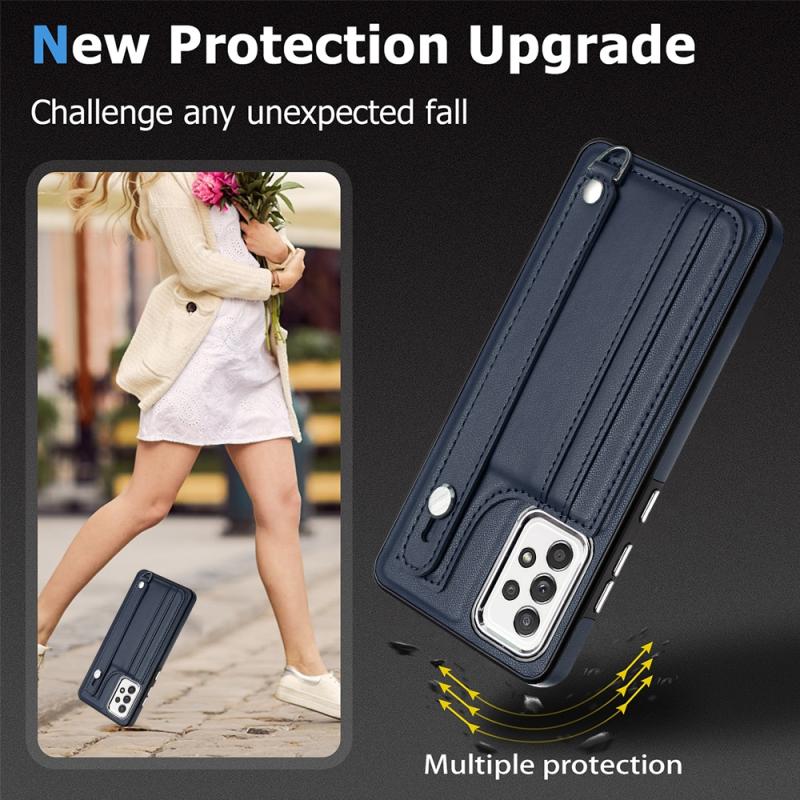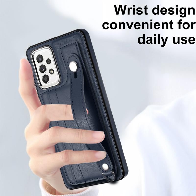 Θήκη κινητού τηλεφώνου από δέρμα ανθεκτική στις κρούσεις για Samsung Galaxy A52 4G / A52 5G με λουρί καρπού (Μπλε)