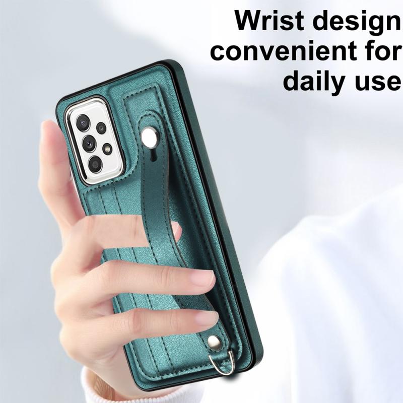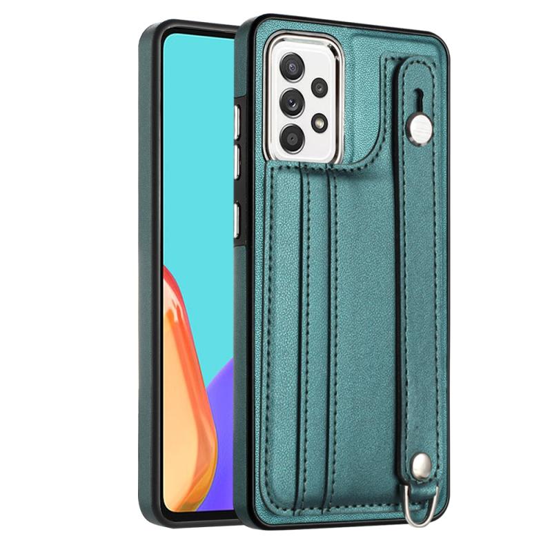 Θήκη κινητού τηλεφώνου από δέρμα ανθεκτική στις κρούσεις για Samsung Galaxy A52 4G / A52 5G με λουρί καρπού (πράσινο)