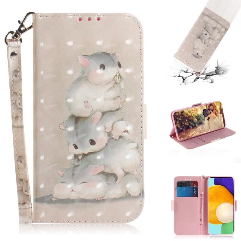 Θήκη δέρματος οριζόντιας αναδίπλωσης με μαγνητική έλξη και τρισδιάστατο σχέδιο για Samsung Galaxy A52 5G / 4G, με βάση στήριξης, θήκη καρτών, πορτοφόλι και κορδόνι (Σκιουράκια)