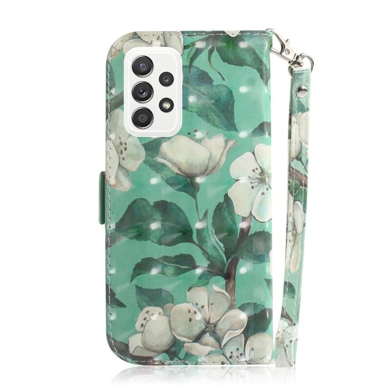Θήκη δέρματος οριζόντιας αναδίπλωσης με μαγνητική έλξη και τρισδιάστατο σχέδιο για Samsung Galaxy A52 5G / 4G, με βάση στήριξης, θήκη για κάρτες, πορτοφόλι και κορδόνι (Ακουαρέλα Λουλούδια).