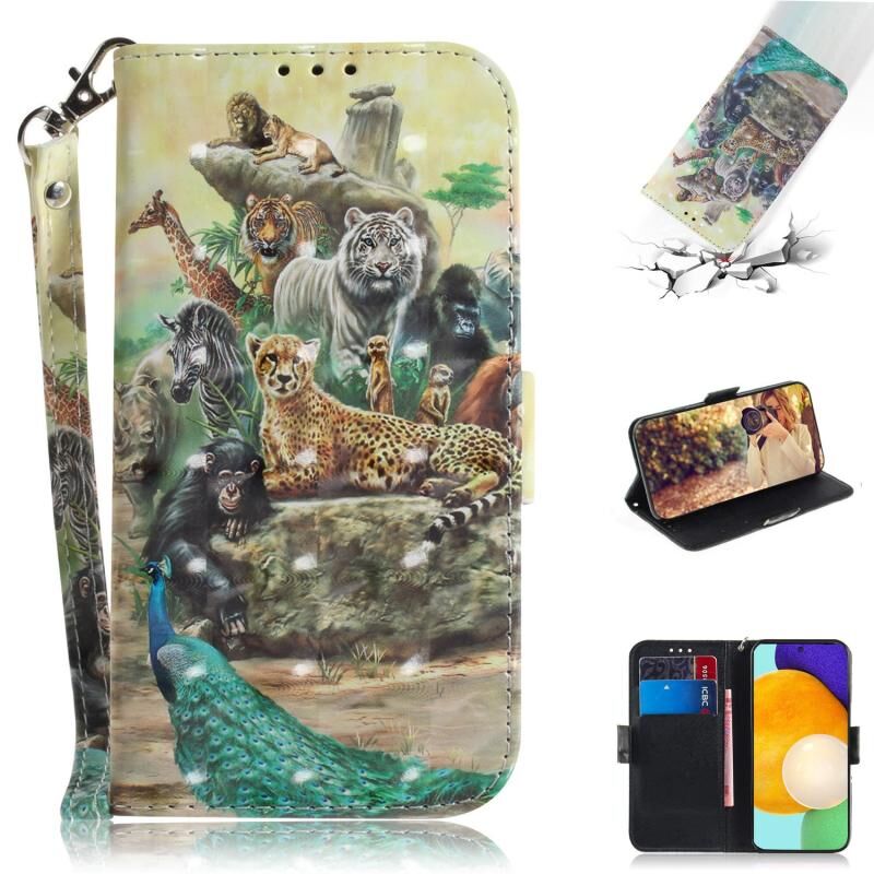 Θήκη δέρματος οριζόντιας αναδίπλωσης με μαγνητική έλξη και τρισδιάστατο σχέδιο για Samsung Galaxy A52 5G / 4G, με βάση στήριξης, θήκη για κάρτες, πορτοφόλι και κορδόνι (Ζωολογικός κήπος)