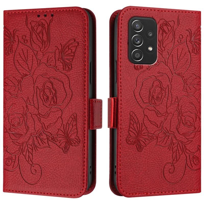 Για Samsung Galaxy A52 5G / 4G / A52s 5G ανάγλυφο Rose RFID αντικλεπτική δερμάτινη θήκη τηλεφώνου (κόκκινο)