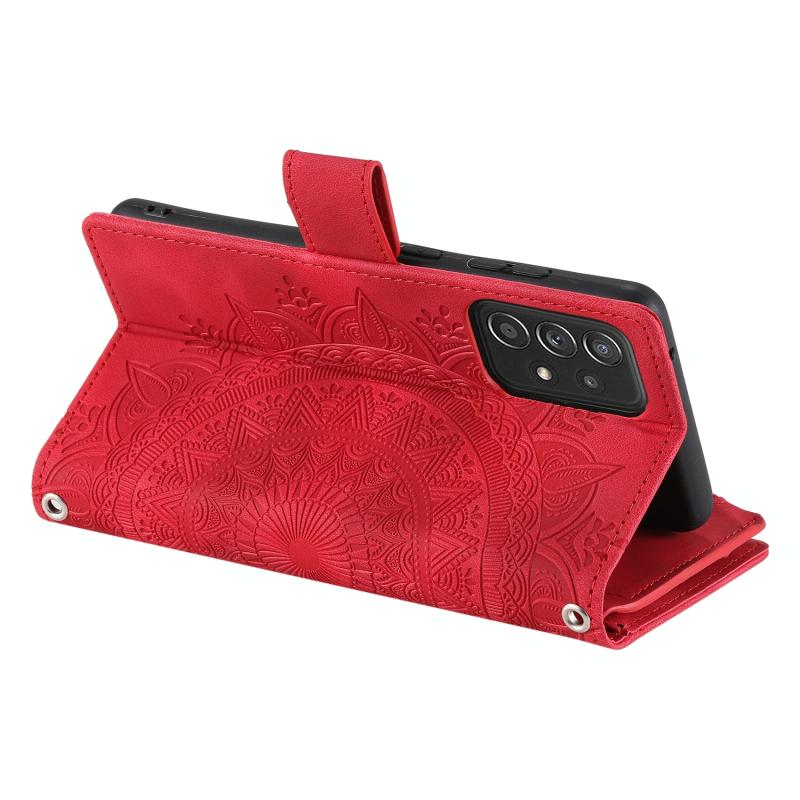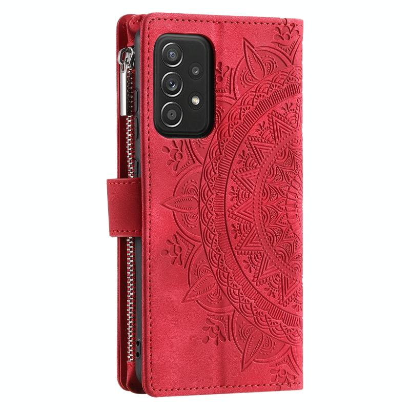 For Samsung Galaxy A52 5G/4G / A52S Multi-Card Totem Zipper Leather Phone Case(Red)