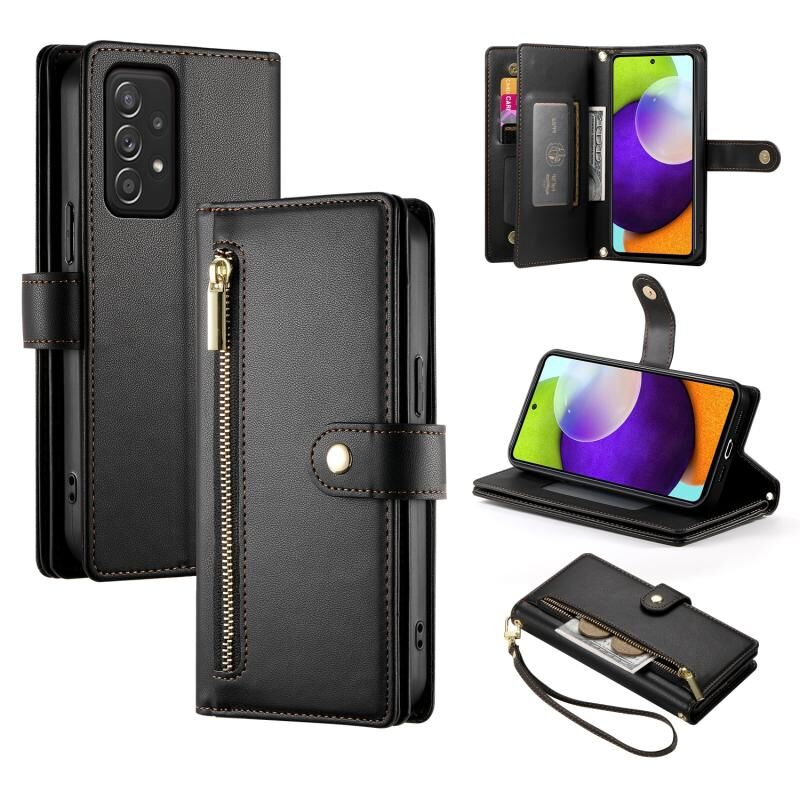 Για Samsung Galaxy A52 5G / 4G / A52s Nine Card-slot φερμουάρ πορτοφόλι τσάντα δερμάτινη θήκη τηλεφώνου (Μαύρο)