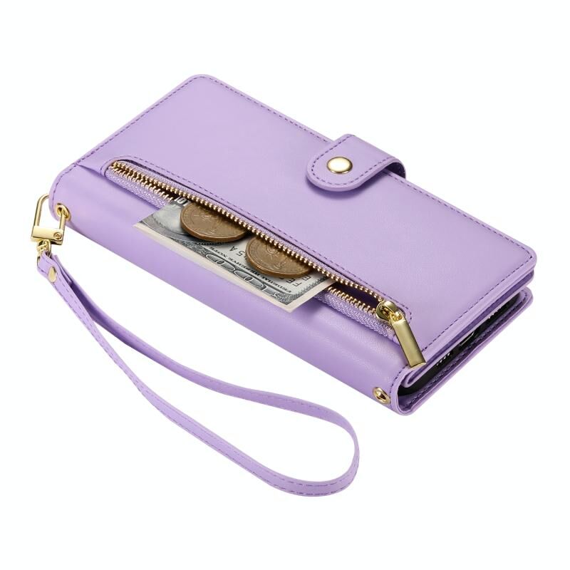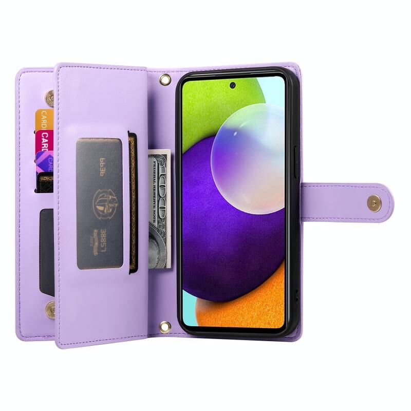 Για Samsung Galaxy A52 5G / 4G / A52s Nine Card-slot φερμουάρ πορτοφόλι τσάντα δερμάτινη θήκη τηλεφώνου (Μωβ)