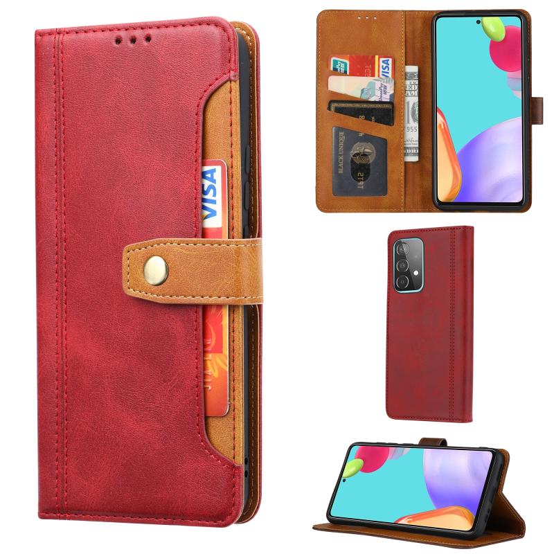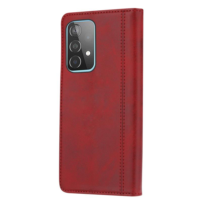 Θήκη δέρματος οριζόντιας αναδίπλωσης με υφή μοσχαριού και διπλό κούμπωμα για Samsung Galaxy A52 5G / 4G, με κορνίζα φωτογραφιών & βάση στήριξης & θήκες καρτών & πορτοφόλι (Κόκκινο)