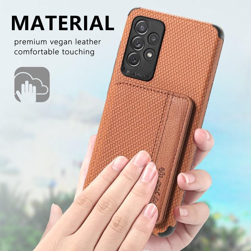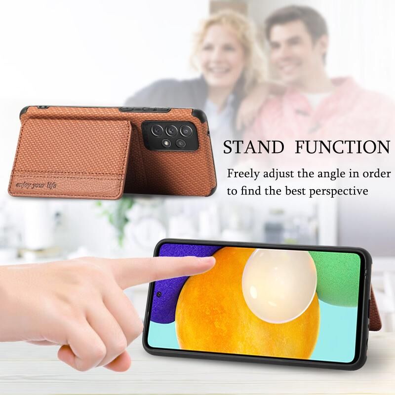 Για Samsung Galaxy A52 5G / 4G Carbon Fiber μαγνητική τσάντα κάρτα TPU + PU Shockproof πίσω κάλυμμα υπόθεση με θήκη & υποδοχή κάρτας & πλαίσιο φωτογραφιών (καφέ)